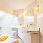 Odalarda en fazla 4 konaklayabilir ve kişisel kasa, televizyon, özel kasa bulunmaktadır. Bu 2 yatak odalı dairede buzdolabı, fırın, çamaşır makinesi bulunmaktadır. Kurutucu, banyo havluları, havlular da banyo odasında sunulur.